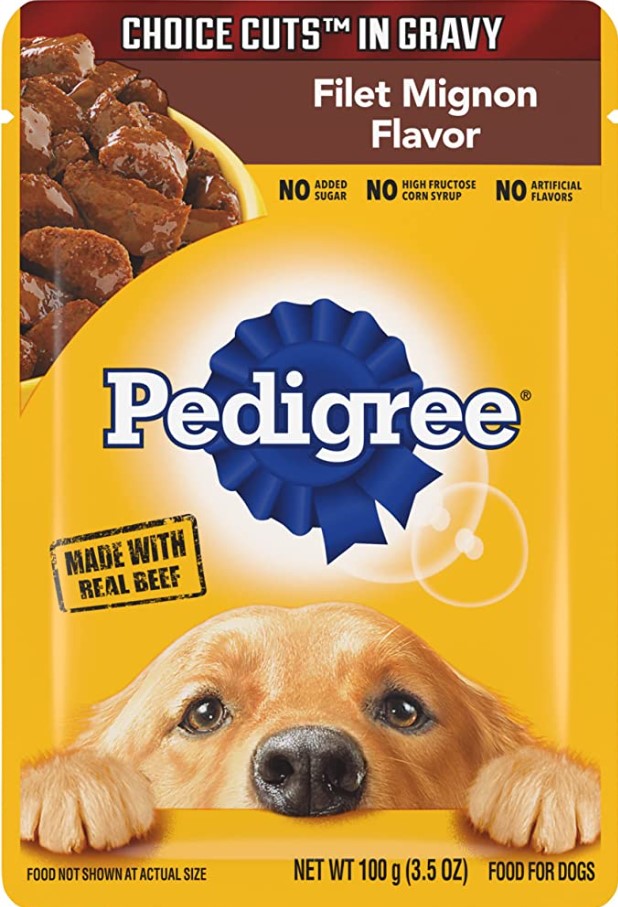 PEDIGREE CHOICE CUTS IN GRAVY in our Filet Mignon Flavor is the wet dog food that delivers the taste dogs crave with the nutrition they need. These hearty cuts in a delectable gravy sauce make a delicious meal for puppy dogs of all sizes and provide the perfect balance of vitamins and minerals with no artificial flavor, no added sugar, and no high fructose corn syrup. Each recipe is 100% complete and balanced for adult canines, so you know they’re getting the most out of their diet. Serve as a topper, a mixer with dry dog food, or a complete meal! Feed your dog nutritious food for a healthy, happy life with PEDIGREE Pouches.